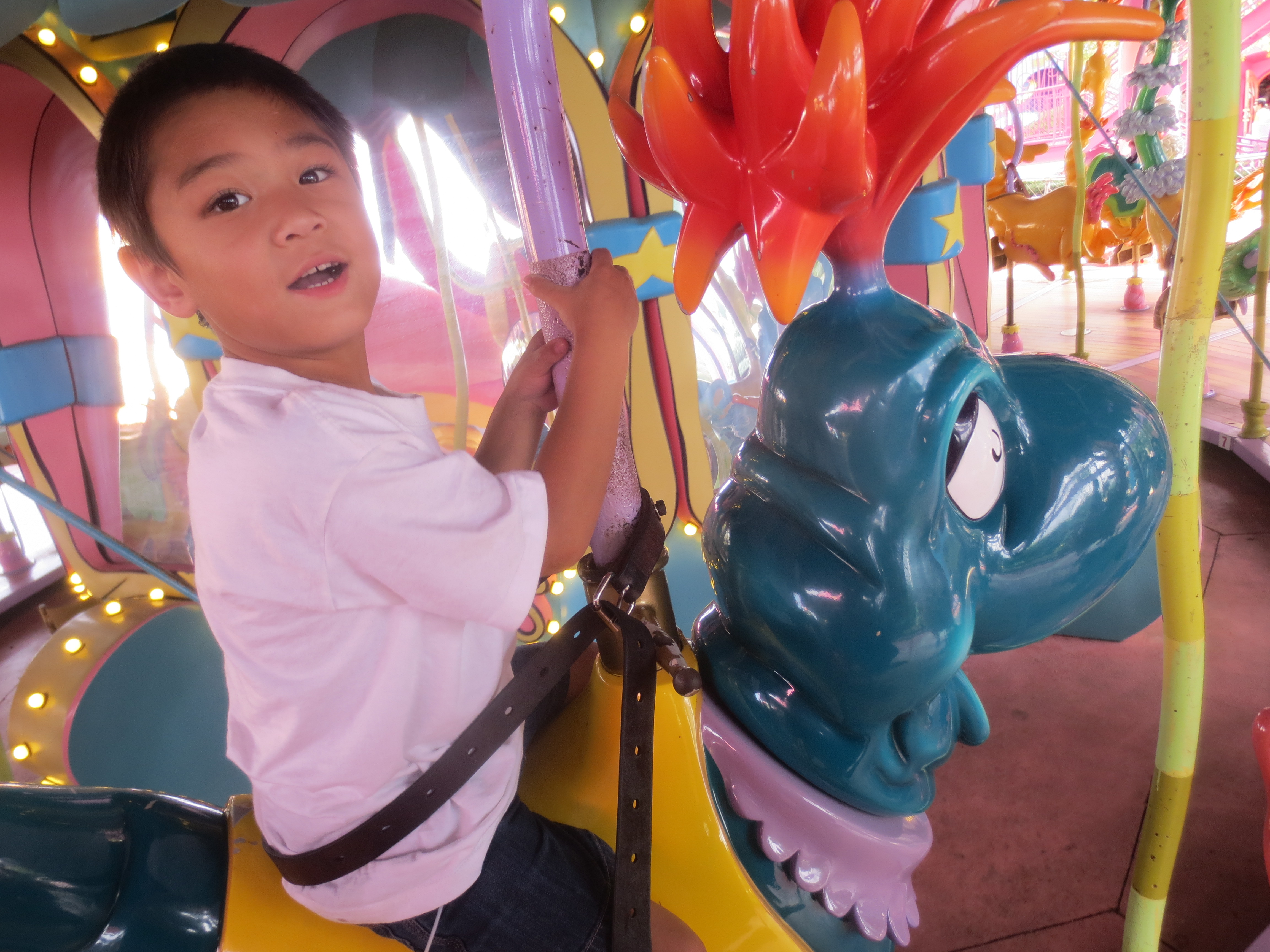 Riding the Caro-Seuss-el at Islands of Adventure.