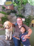 Emily had researched last night a few things to do today. One of the things she was excited to see was a stage show about animals that performed in movies. I wasn’t sure how Patrick would do, but we were in the right place at the right time. When we arrived, an employee took to Patrick and chatted with him until it was time to go into the theatre. We got front row seats. Patrick did fairly well. The animals did great. We were told to stay seated and we would be able to meet an animal. We followed the instructions, it felt kinda funny to have them usher everyone out of the theatre. But we got to meet Marley from “Marley and Me”. A very nice gentle dog. Patrick was happy to see the dog, but more interested to play with the head trainers radio.