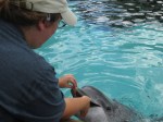 We went back across the park to catch the dolphin show. We got the very last handicap seat available. The show was good until they stopped the show because of lightning in the area.