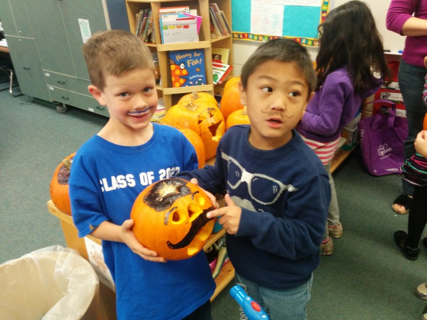 Previous Image Next Image IMG_20141029_105223 Patrick and a classmate showing off the pumpkin they made at school