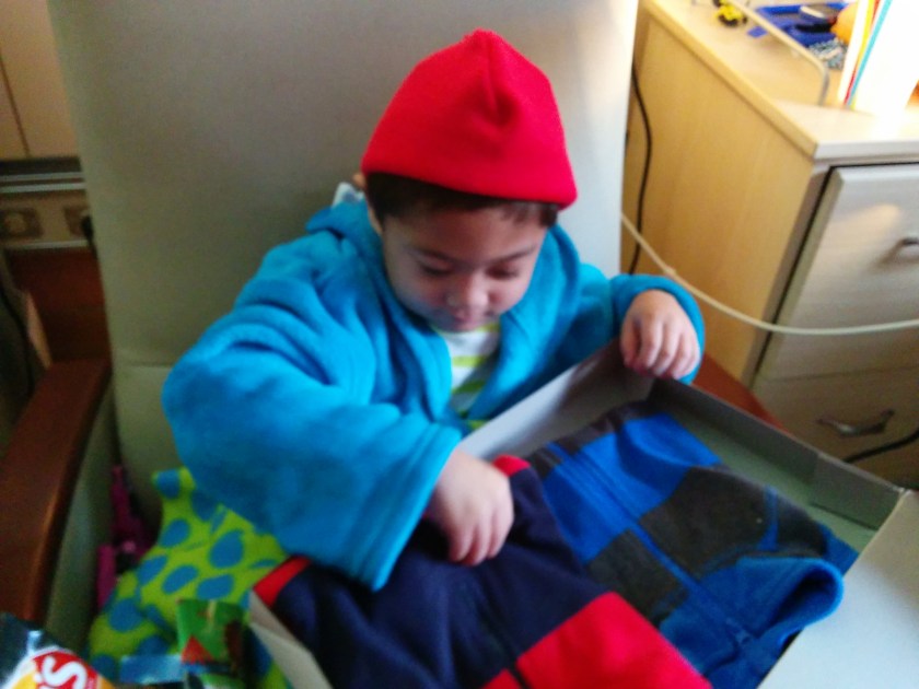 Patrick opening some of his presents