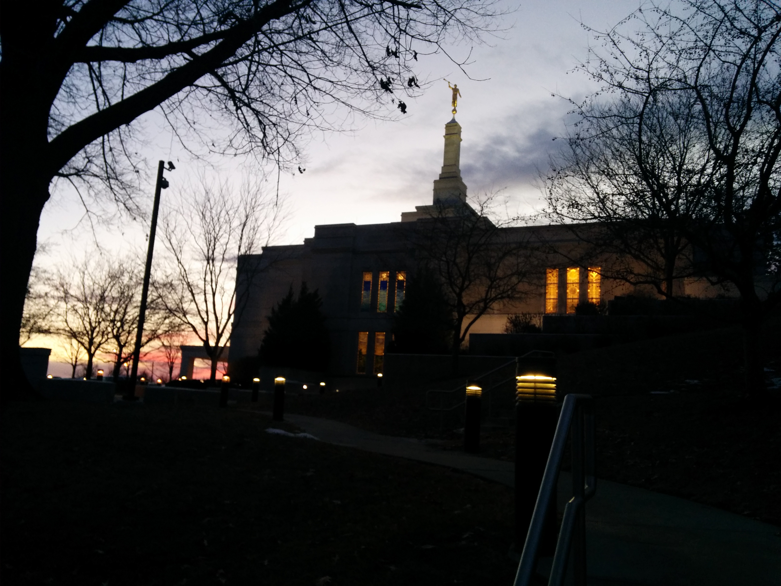 We stopped after the playground a few nights ago at the Winter Quarters temple just at sunset. I like sunset. It tells me which way is west, and therefore home.