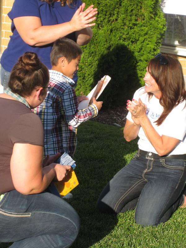 A few minutes later Emily pulled into the drive way. Patrick looking out his window noticed we were all there, and started grinning. Emily reports that Patrick saw everyone and yelled, “Hey! Why everyone here?” Then, grinning ear to ear and climbing out of his seat before we were even parked, “I want talk to them!”