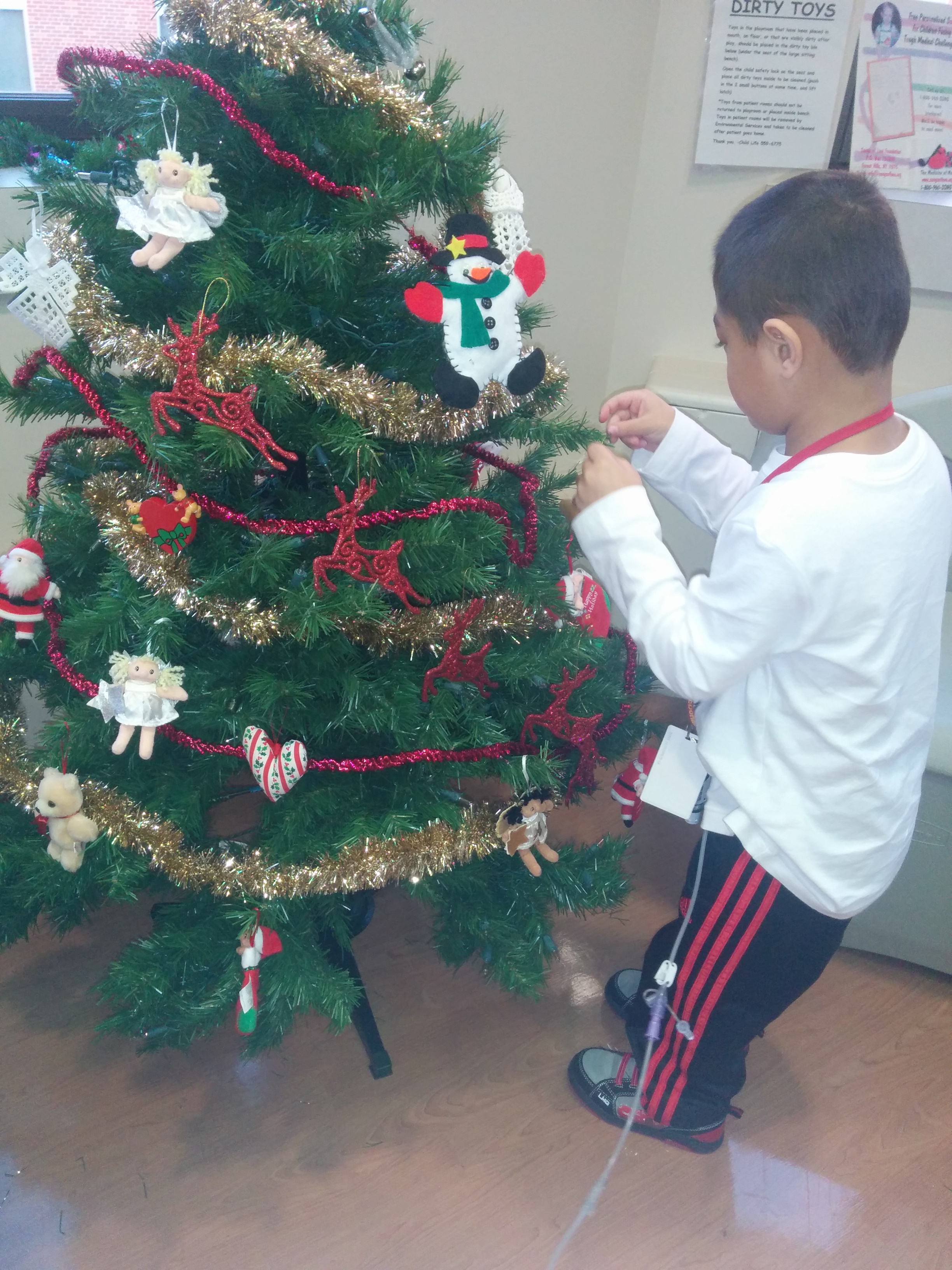 We visited the chapel. We played in the guest pavilion. We found every Christmas tree we could muster. We passed the attending surgeon on the way and he gave Patrick a HUGE smile. (Bet that wins some discharge points.)