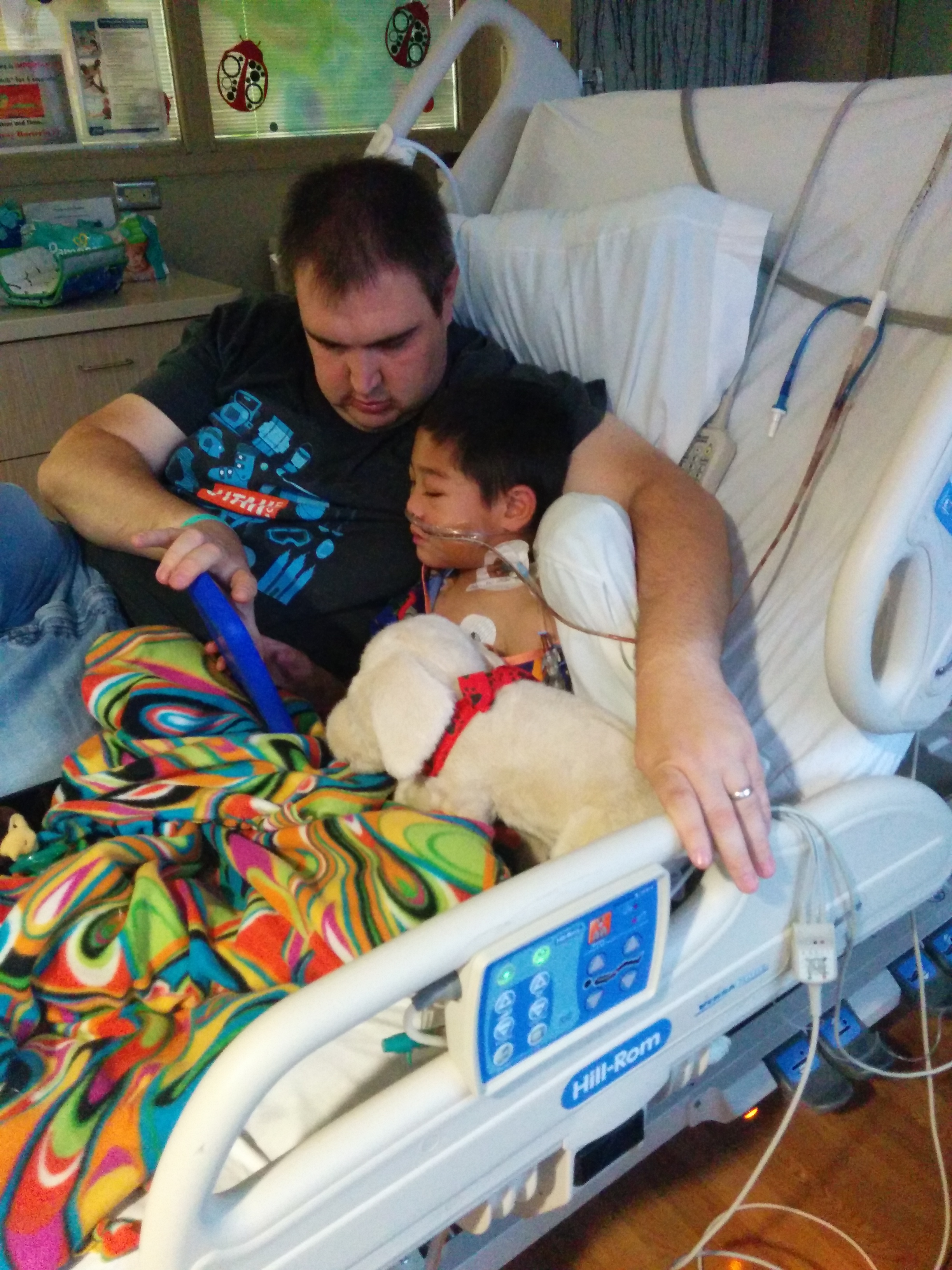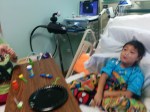 When he was not quite 5, Patrick ran out of major vessels above his heart where central lines could be placed. It happened suddenly. A doctor wrote the wrong concentration of ethanol lock. A line clotted. A nurse flushed too hard. Patrick went to surgery to have the line replaced and he came back without one. Upon hearing the news, the transplant team made him status 7 on the transplant list — on hold. Without access, he could not have a transplant. Two days later, we flew to Nebraska to have an alternative central line placed by passing a sheathed needle through his femoral vein and through his heart and out through his superior vena cava.