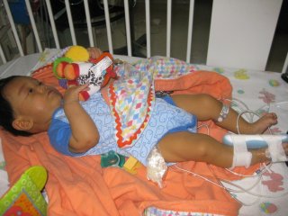 Because of Patrick’s low lipid protocol, there is a lot of sugar in his TPN. It’s a very high osmolarity formula that kind of rips up small veins. So tonight we got a shipment of a lower osmolarity, lower sugar formula to run until we get a resolution.