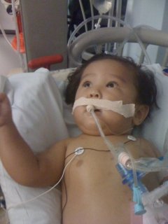As the day went on, he woke up little by little and started to play peek-a-boo and smile and hold toys. His X-rays and labwork improved. As he woke up, they started to wean him slowly off the ventilator and off the sedatives.